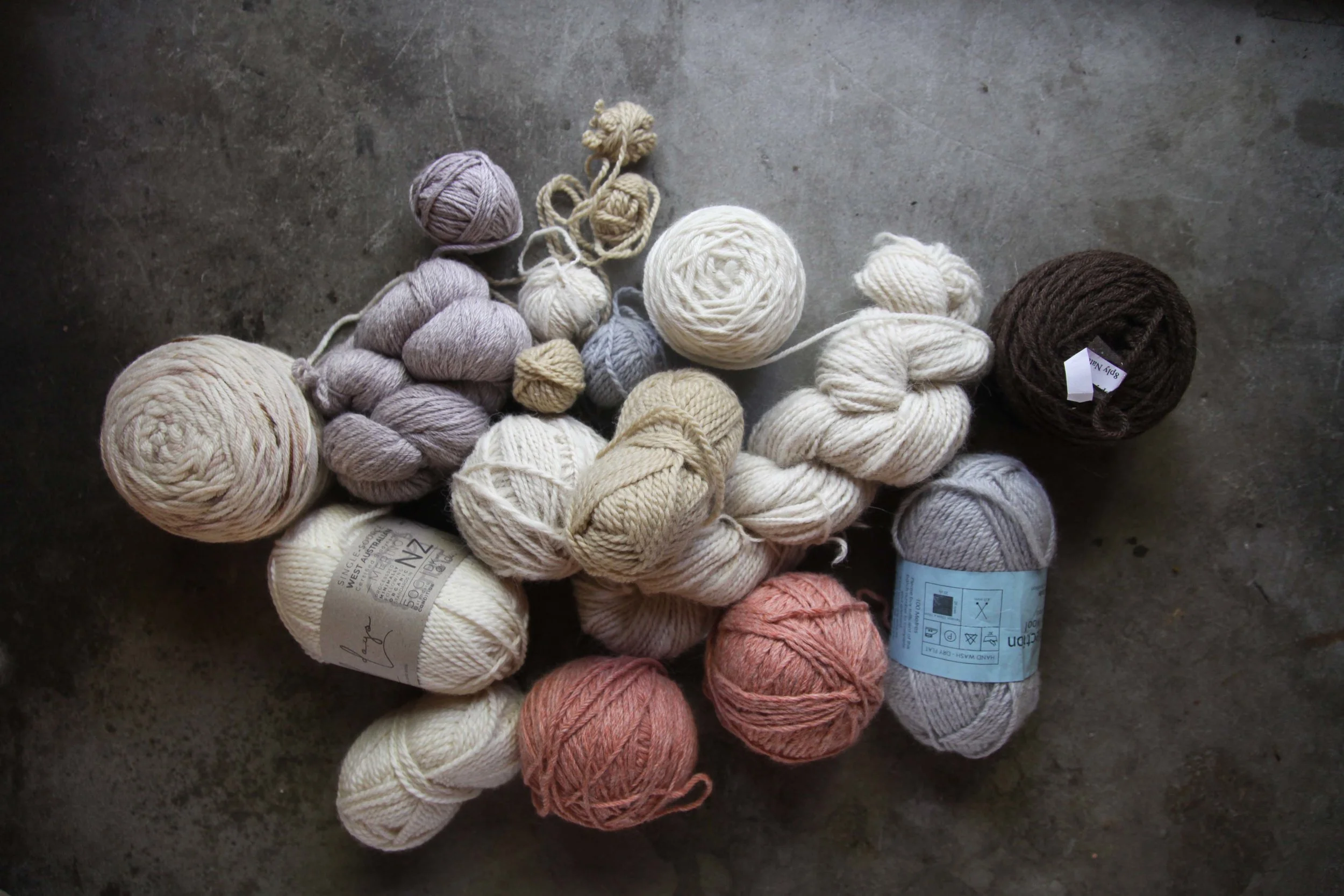 My very favourite idea - These are Australian yarn scraps that go back many years. There is Pear Tree (non longer exist), Nundle, WoolDays, Tarndie, Handspun Alpaca, and WhiteGum Wool dyed by Nunnaba. The question is whether I would wear a sweater made in these colours??